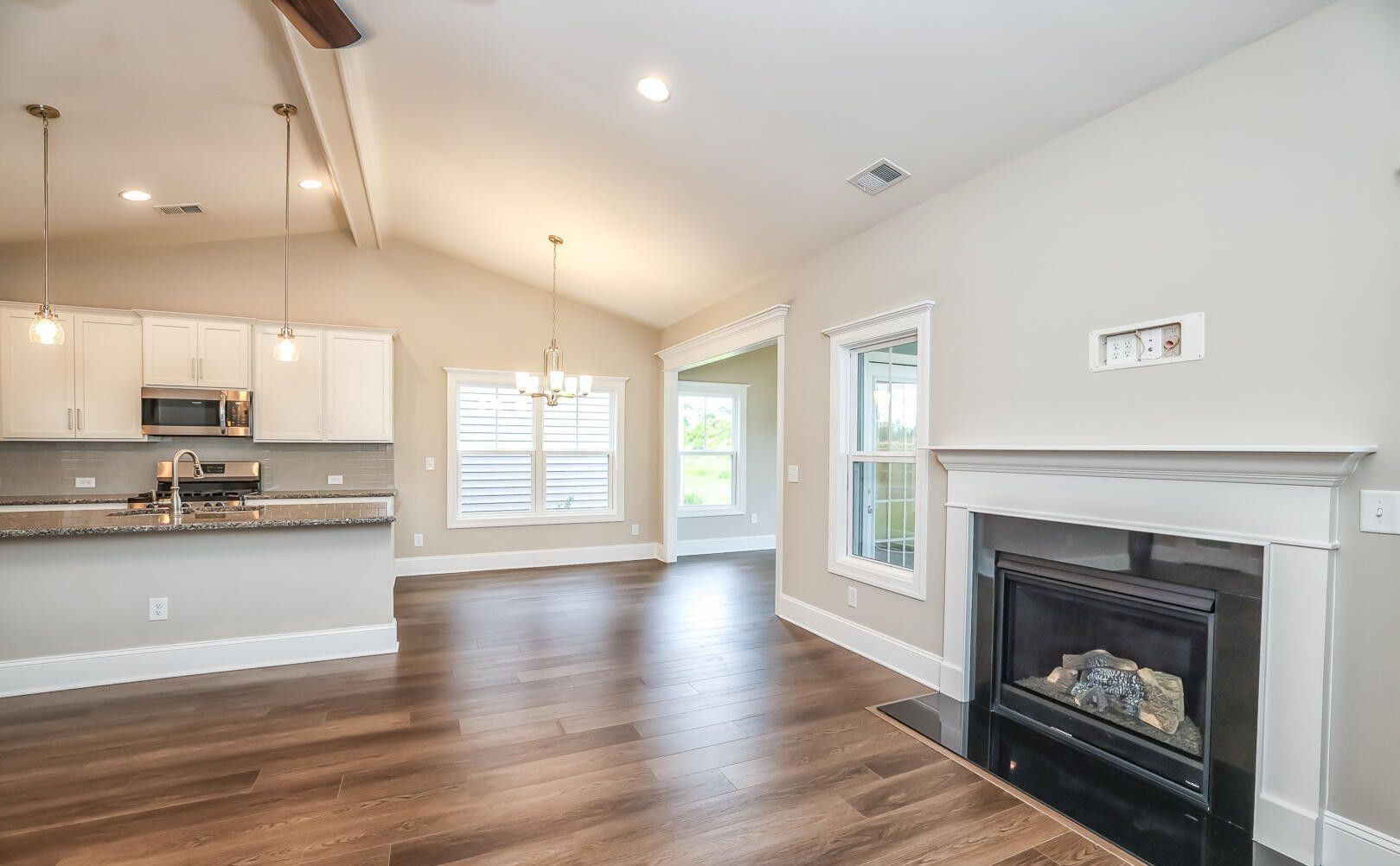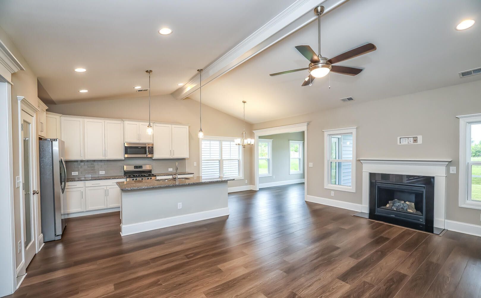 The home features a functional single-level layout with generous living spaces that make everyday living easy and comfortable. The open living and dining areas are filled with natural light and provide a welcoming space for family gatherings, quiet evenings, or entertaining guests. A cozy fireplace adds warmth and character, creating a true sense of home year-round.